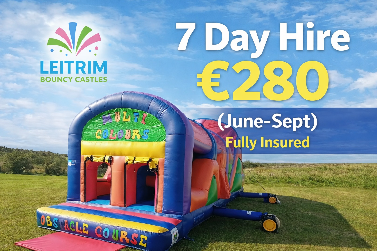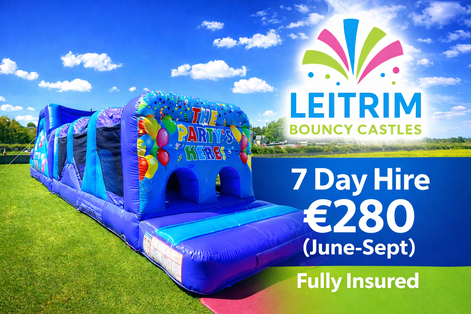 Leitrim Bouncy Castles provides dependable Bouncy Castle Hire and Obstacle Course Hire and Giant Obstacle Courses across Leitrim Village, Carrick On Shannon, Drumshanbo, Mohill and County Leitrim. Clear options. Trusted gear. Big smiles. π